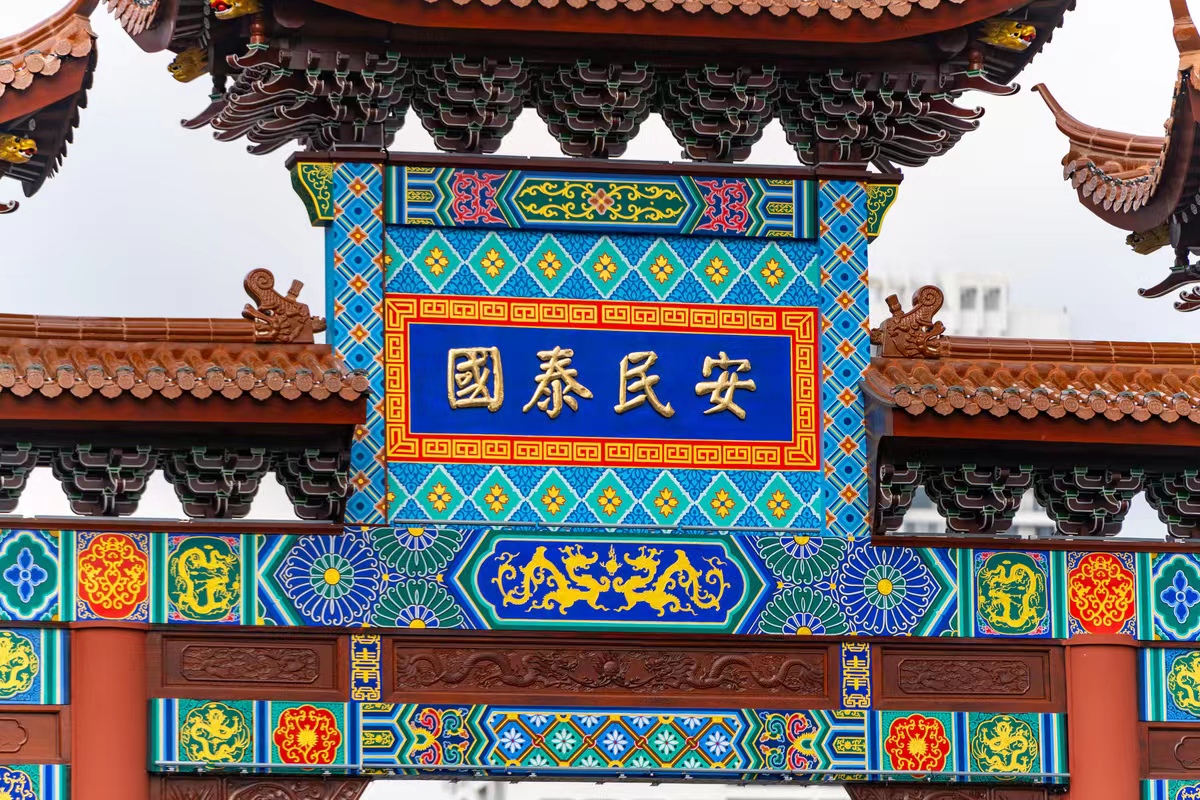 修繕后的城隍廟牌坊浮雕精工細(xì)琢,斗拱層疊,檐角飛翹,彩繪圖案色彩亮麗、刻畫精美,四根朱紅色的立柱明亮可鑒、氣勢(shì)恢弘,匾額上的“國泰民安”四個(gè)字寄托了對(duì)這座城市的美好祝愿。